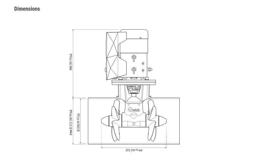 This SET includes BTQ 250 thruster with two propellers, Stern (STERN) tunnel, joystick control with cable, fuse with bracket, and battery switch. Available sets are: – BTQ 250-120 SET (120 Kgf – 6500W – 12V/24V – Ø 250mm) – BTQ 250-140 SET (140 Kgf – 8000W – 24V – Ø 250mm) – BTQ 250-240 SET (240 Kgf – 10000W – 24V – Ø 250mm)