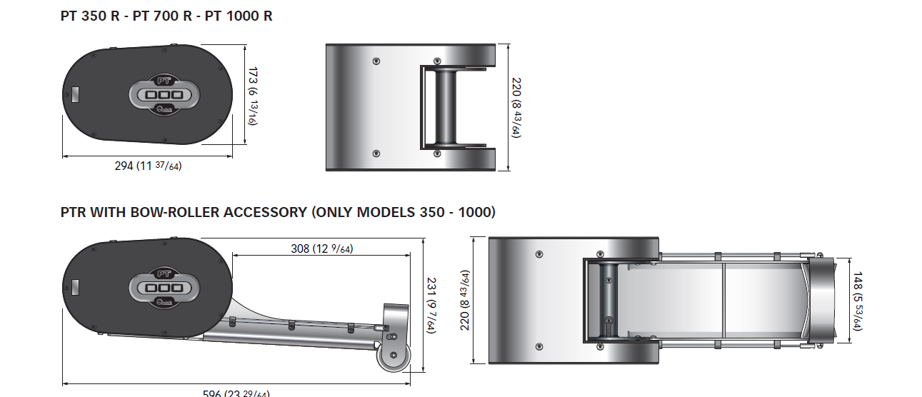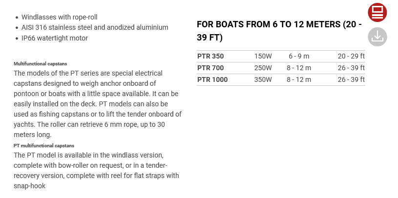 Deck winch Quick PTR with 30m rope. For boats from 6m to 12m. It comes in different variants, 150W models are available. 250W and 350W, 12V or 24V.